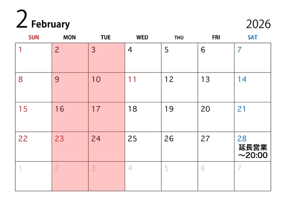 営業日はカレンダーをご覧ください